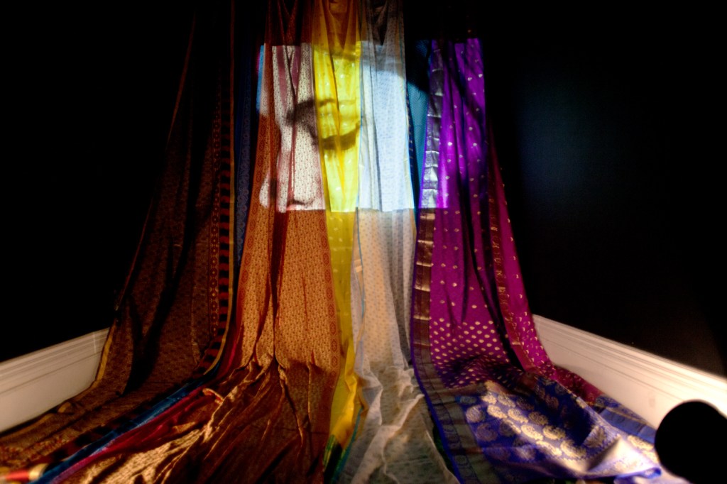 I’m captivated by the way Veena navigates the intersections of migration, cultural translation, and authenticity, all while incorporating Saris and technology. It’s truly a captivating piece, offering a distinct experience whether viewed as a standalone video or as part of an installation. What role does installation have in your work? How does installation allow you to explore nuances of complicated narratives?